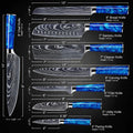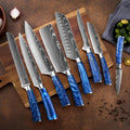 Japanese Chef Knife Set - Blue Epoxy + Designer Magnetic Knifeblock