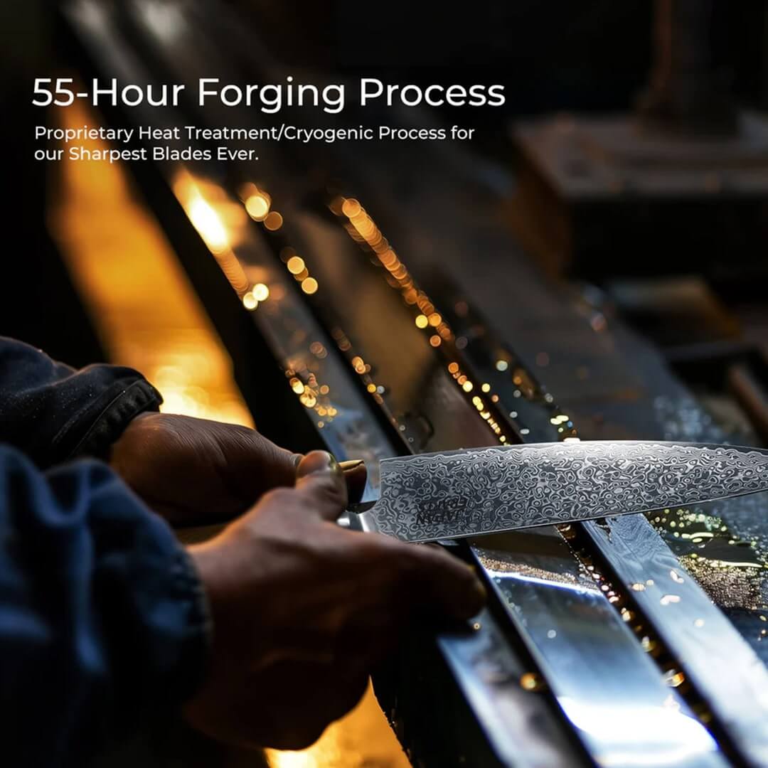 Our knives are created using time-honored forging techniques that originate from the art of the samurai sword. Layer by layer, the steel is folded, forged, and polished until it reaches a level of sharpness and durability that ordinary knives simply cannot match.